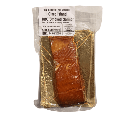 Barbecued Oak Smoked Salmon by Gerry Hasset @ Keem bay. Boneless Clare Island Salmon tails, first smoked in a traditional manner, with the temperature of the kiln is raised toward the end of the smoking to cook the product through.