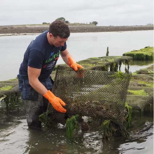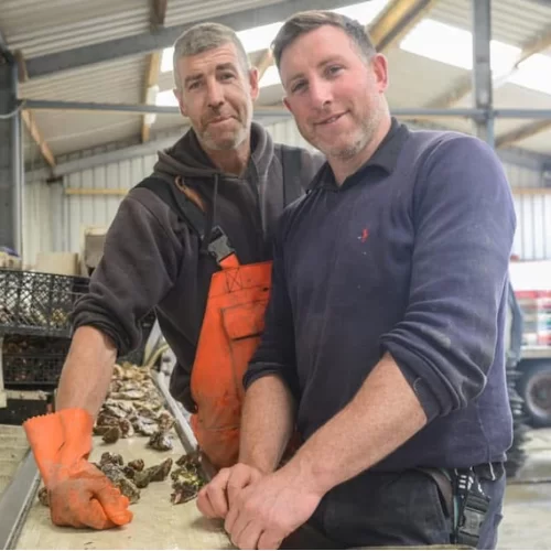 Moyasta oysters are grown in the grade A quality water of Poulnasherry Bay, County Clare, where fresh water from the Shannon River mix with the Ocean, to make a rich nutrient’s soup and the perfect conditions for oysters to grow, A family run business, Moyasta oyster is operated by Thomas Galvin, second generation Oyster farmer. Thomas knows how to grow oysters… but as importantly, he also understands that Oyster lovers look beyond the shells and expect a full Oyster with a superior flavour… not just shells… Moyasta oysters are only harvested and sold when matching Thomas standards for what we know in the trade as a “Petite Special ” a middle of the road between a ” Fine” and a “Special”
