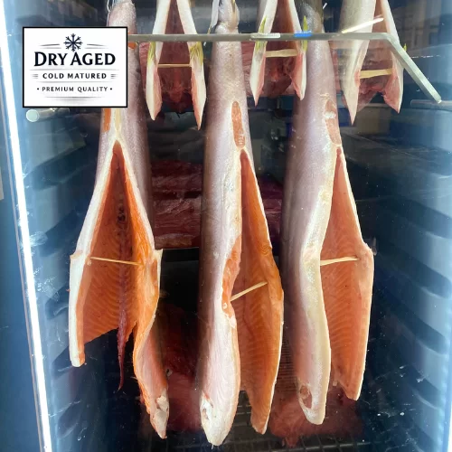 Dry aged Salmon suitable for cooking or Sashimi.