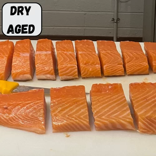 Dry aged Salmon suitable for cooking or Sashimi.