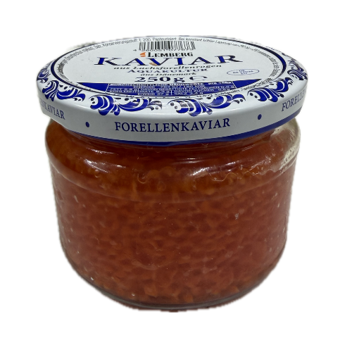 This bright orange small trout caviar is a delicious alternative to more expensive Salmon roe. Perfect for sushi, or as a decorative topping for toast or even Oysters