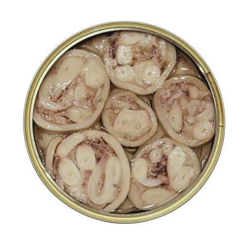 “Rodajas de pulpo relleno en aceite vegetal” Stuffed Octopus wheel in olive oil. erfect as a snack or as part of a Seacutery board.