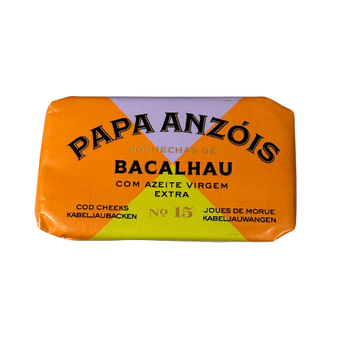 Portugal is world famous for its bacahau, where Cod cheeks are a known delicacy. This tin from Papa Anzóis embraces the revival of artisanal fish canning tradition from the region.