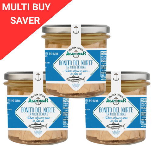 SAVER D€AL – Save €3 – Shop 3 Premium chunky Tuna in olive oil by Agromar Conserva in Asturia. 100% Line caught fish for best quality fish and sustainability. Cooked & prepared exclusively from Fresh ( Never Frozen)