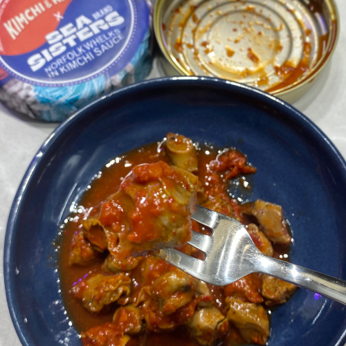 Ingredients: Whelks MOLLUSC (73%),Kimchi (27%): Chili , Daikon, Garlic,Ginger, Gochu garu (Korean Chili flakes), Organic Apple Cider vinegar, Cornish Dried Seaweed, Sea salt.